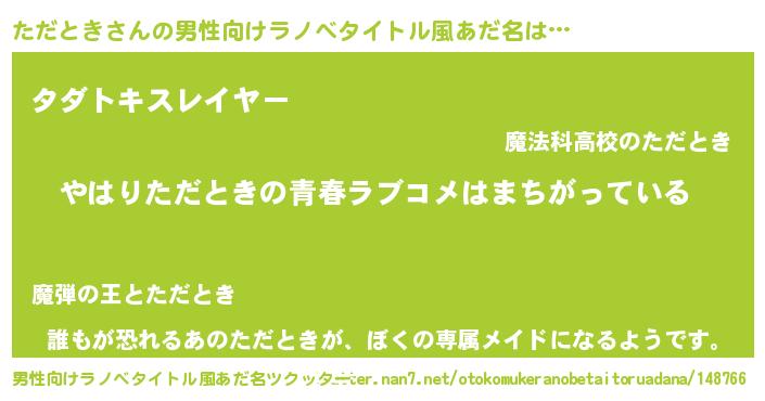 | ファンタジー風あだ名 | 『エターナルタダトキー』『ゼタダトゥ』 |