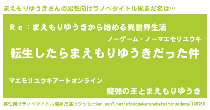 | ヒーロー風カッコイイあだ名 | 『サイバー戦士マエモリユウキ』 |