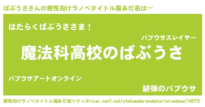 | 女子向けラノベタイトル風あだ名 | 『ばぶうさアンティーク』 |