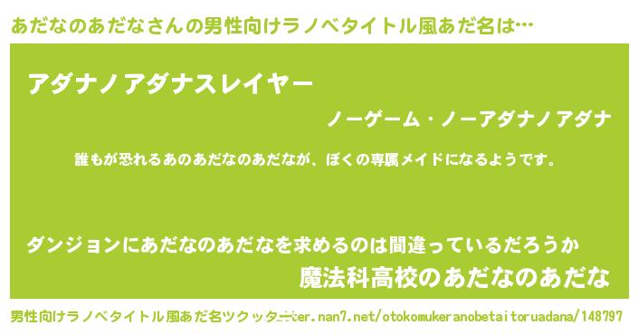 | 女子向けラノベタイトル風あだ名 | 『異世界でカフェあだなのあだなを開店しました。』 |