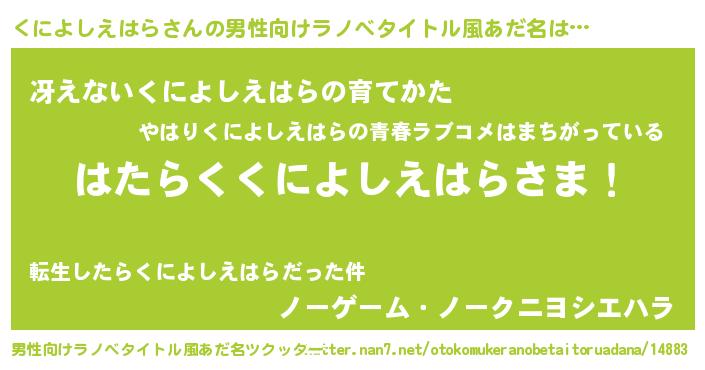 | 胡散臭い通販商品みたいなあだ名 | 『100人中100人が認めたマグネット磁石…その名も「くによしえはら」』 |