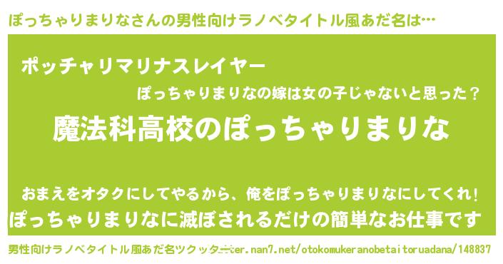 | 女子向けラノベタイトル風あだ名 | 『ぽっちゃりまりななんてお断りですっ。』 |