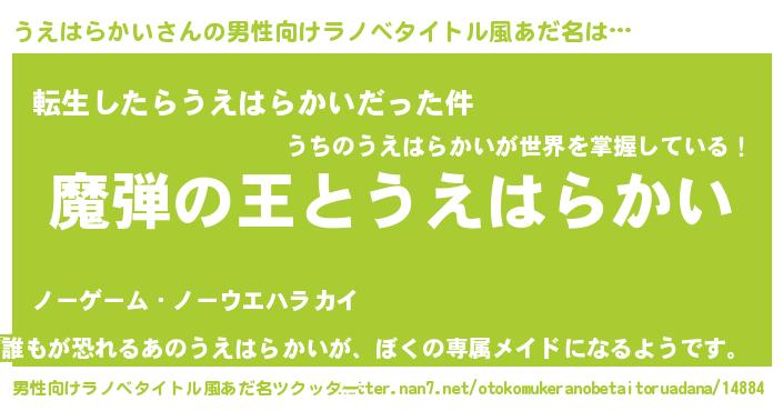 | ヒーロー風カッコイイあだ名 | 『仮面ウエダー』『ネオウエハラカイ』 |