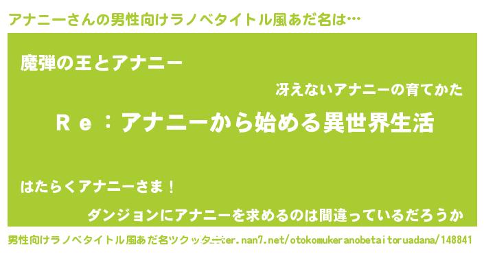 | 女子向けラノベタイトル風あだ名 | 『闇のアナニー』『アナニーは平凡を望む』 |