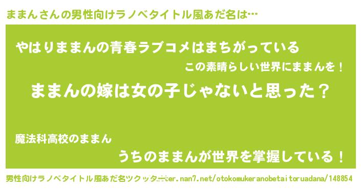 | 意味不明あだ名 | 『とにかく怪しいままん』『自称ままん』 |