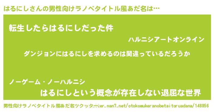 はるにしさんの男性向けラノベタイトル風あだ名をツクッター!