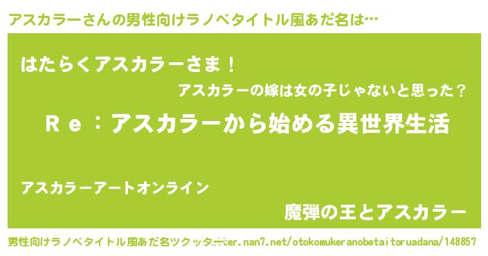 | 女子向けラノベタイトル風あだ名 | 『アスカラーストレイドッグス』 |