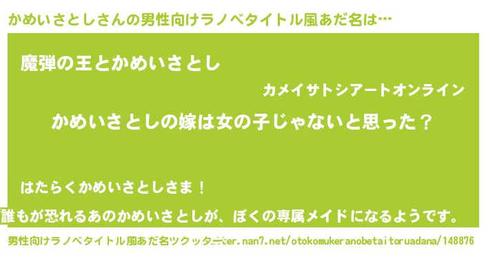 | 女子向けラノベタイトル風あだ名 | 『かめいさとしの卵を拾いまして』 |