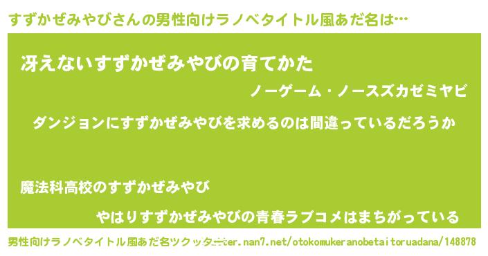 | 女子向けラノベタイトル風あだ名 | 『すずかぜみやびの卵を拾いまして』 |