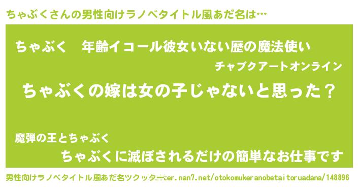 | 女子向けラノベタイトル風あだ名 | 『ちゃぶく様がみてる』 |