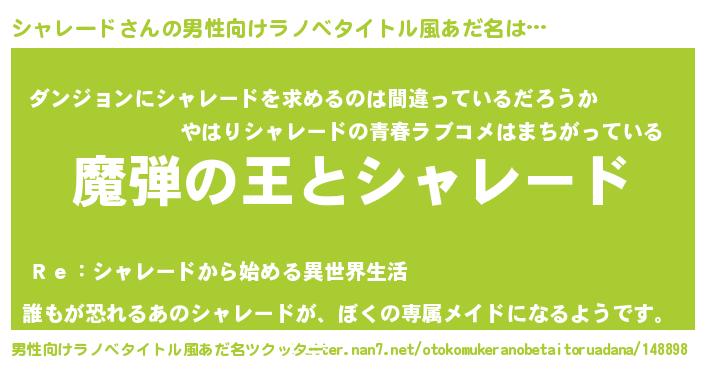 | 意味不明あだ名 | 『住所不定無職シャレード(65歳)』 |