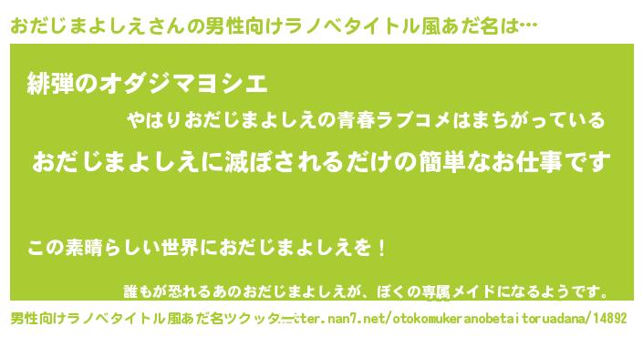 | ヘコむあだ名 | 『おだじまよしえ(爆)』『つくし』 |