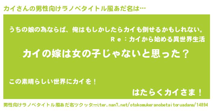 | 意味不明あだ名 | 『とにかく怪しいカイ』『自称カイ』 |