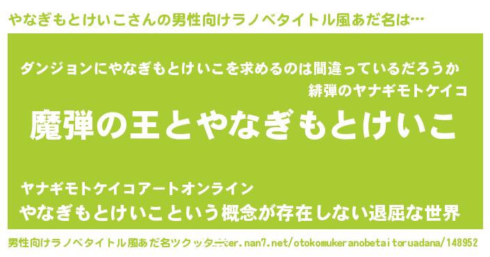 | ポケモン風あだ名 | 『ヤーナイ』『ヒヤナギモトケイコ』 |