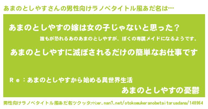 | 女子向けラノベタイトル風あだ名 | 『横柄あまのとしやすと宰相陛下』 |