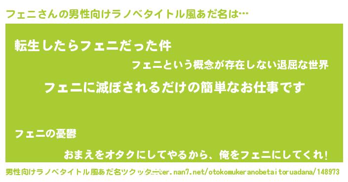 | ヘコむあだ名 | 『フェニ(爆)』『フェもー』『フェお』 |
