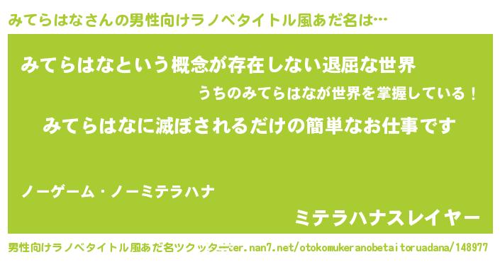 | ヘコむあだ名 | 『みてらはな(震え声)』『みてもー』 |