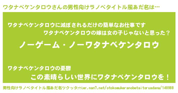 | 女子向けラノベタイトル風あだ名 | 『死神ワタナベケンタロウの再婚』 |