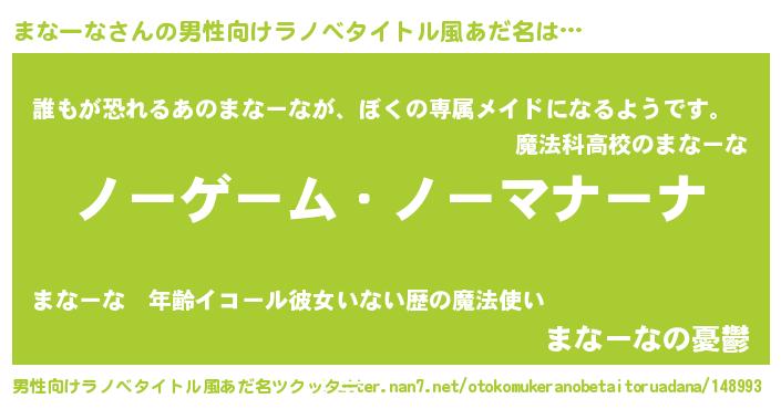 | ヒーロー風カッコイイあだ名 | 『愛の使者まなーな』『ネオマナーナ』 |