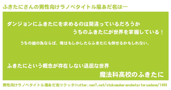 | 女子向けラノベタイトル風あだ名 | 『ふきたにの婚約者』 |