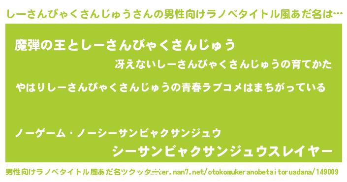 | ファンタジー風あだ名 | 『エターナルシーサンビャクサンジュウー』 |