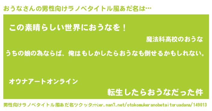 | 胡散臭い通販商品みたいなあだ名 | 『運命の人と巡り会える高級そうな壺…その名も「おうな」』 |