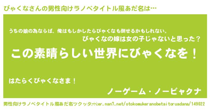 | 意味不明あだ名 | 『住所不定無職びゃくな(14歳)』 |