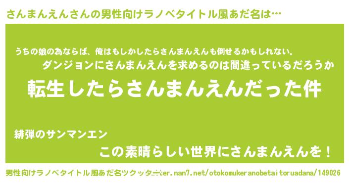 | 料理風あだ名 | 『さんまんえんごはん』 |