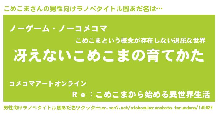 | ヒーロー風カッコイイあだ名 | 『愛の使者こめこま』『最強戦士コメコマ』 |