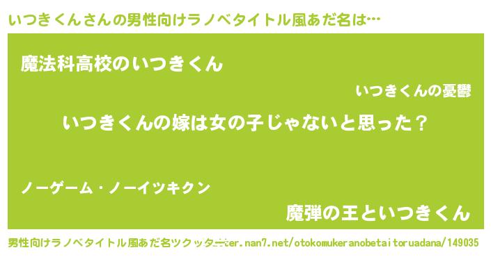 | 女子向けラノベタイトル風あだ名 | 『いつきくんの卵を拾いまして』 |