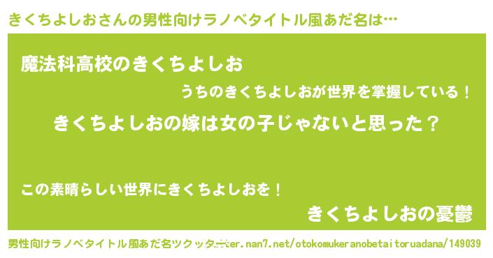 | 女子向けラノベタイトル風あだ名 | 『きくちよしおの卵を拾いまして』 |