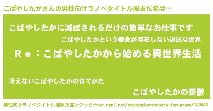 | 女子向けラノベタイトル風あだ名 | 『こばやしたかストレイドッグス』 |