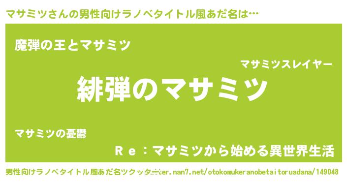| ヒーロー風カッコイイあだ名 | 『仮面マサダー』『超時空戦士マサミツ』 |