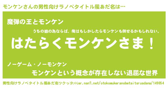 | 意味不明あだ名 | 『住所不定無職モンケン(59歳)』 |