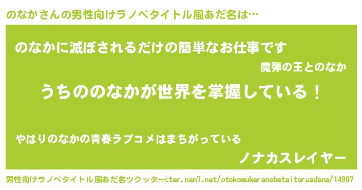 | ヒーロー風カッコイイあだ名 | 『仮面ノナダー』『ウルトラのなかマン』 |