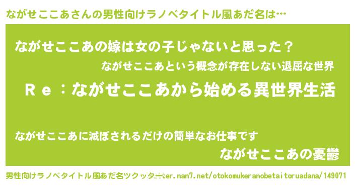 | 意味不明あだ名 | 『自称ながせここあ』 |
