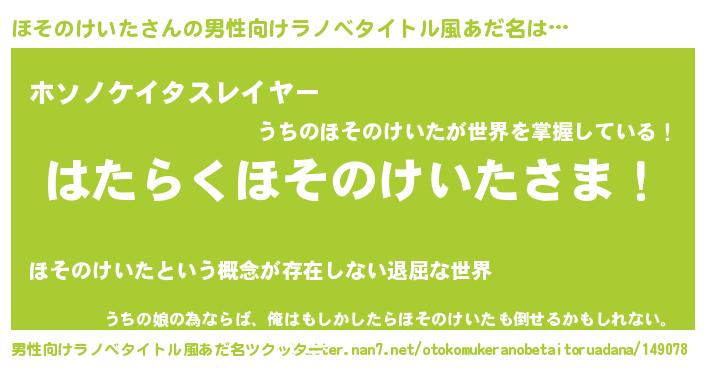| ヒーロー風カッコイイあだ名 | 『ウルトラほそのけいたマン』 |