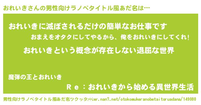 | 胡散臭い通販商品みたいなあだ名 | 『絶対に幸福をもたらす水素水…その名も「おれいき」』 |