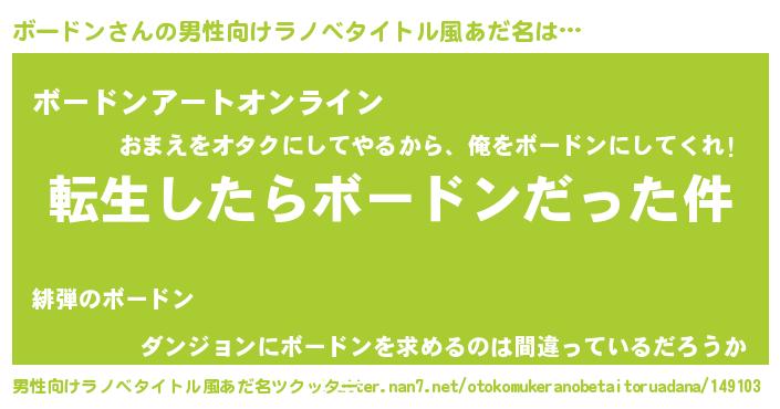 | 肩書あだ名 | 『ボードン少尉』『ボードン店長』 |