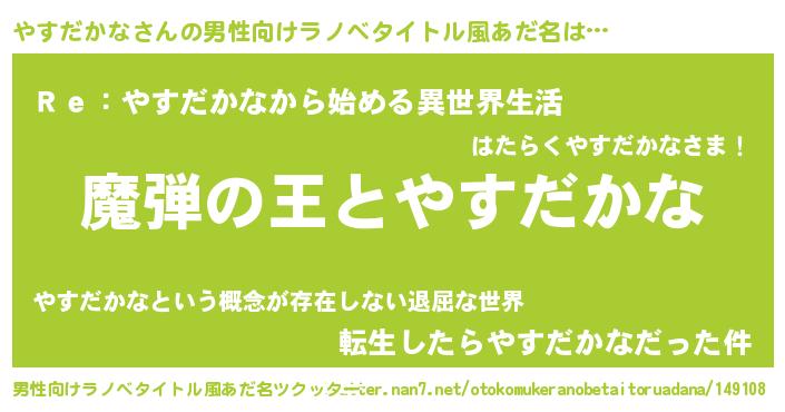 | 意味不明あだ名 | 『住所不定無職やすだかな(39歳)』 |