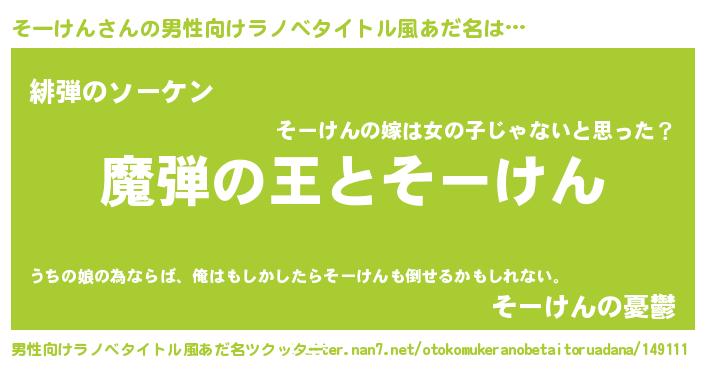 | 意味不明あだ名 | 『住所不定無職そーけん(62歳)』 |