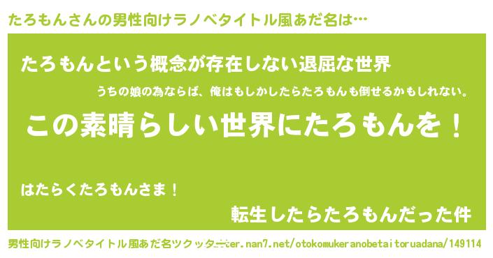 | 意味不明あだ名 | 『住所不定無職たろもん(86歳)』 |