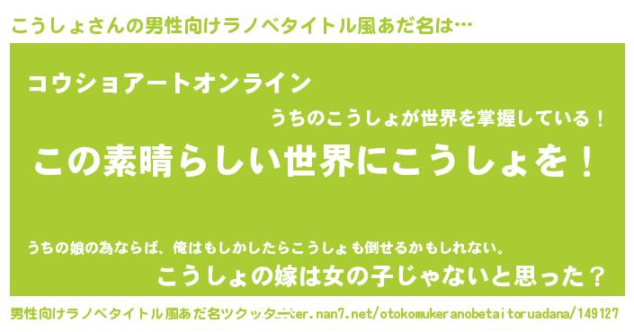 | 意味不明あだ名 | 『住所不定無職こうしょ(9歳)』 |