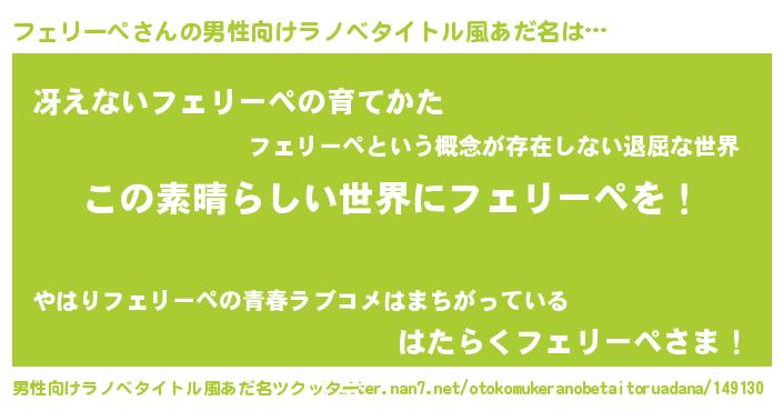 | 女子向けラノベタイトル風あだ名 | 『乙女ゲームの破滅フラグしかない悪役フェリーペに転生してしまった…』 |
