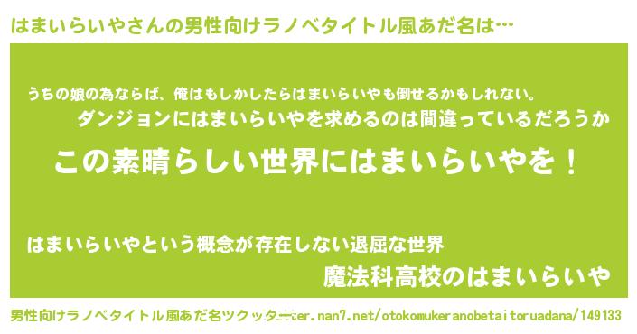 | 意味不明あだ名 | 『住所不定無職はまいらいや(8歳)』 |