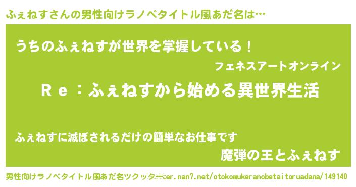 | 女子向けラノベタイトル風あだ名 | 『闇のふぇねす』 |