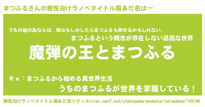 | 女子向けラノベタイトル風あだ名 | 『乙女ゲームの破滅フラグしかない悪役まつふるに転生してしまった…』 |