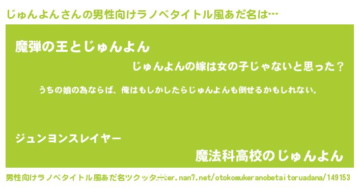 | 女子向けラノベタイトル風あだ名 | 『じゅんよんの婚約者』 |