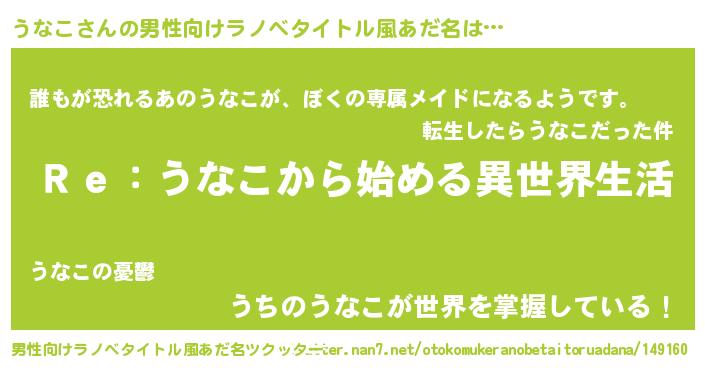 | 欧米人風あだ名 | 『ケンブリッジうなこ』『マイケルうなこ』 |