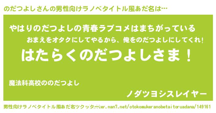 | ファンタジー風あだ名 | 『エターナルノダツヨシー』『ゼノダトゥ』 |
